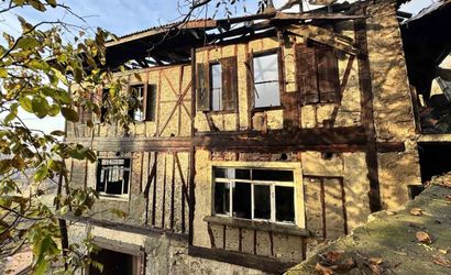 KARABÜK’ÜN SAFRANBOLU İLÇESİNDE GECE SAATLERİNDE ALEVLERE TESLİM OLAN YAKLAŞIK 150 YILLIK TARİHİ KONAKTAN GERİYE KALAN HARABE DRONLA GÖRÜNTÜLENDİ.