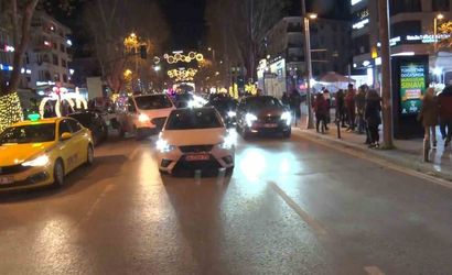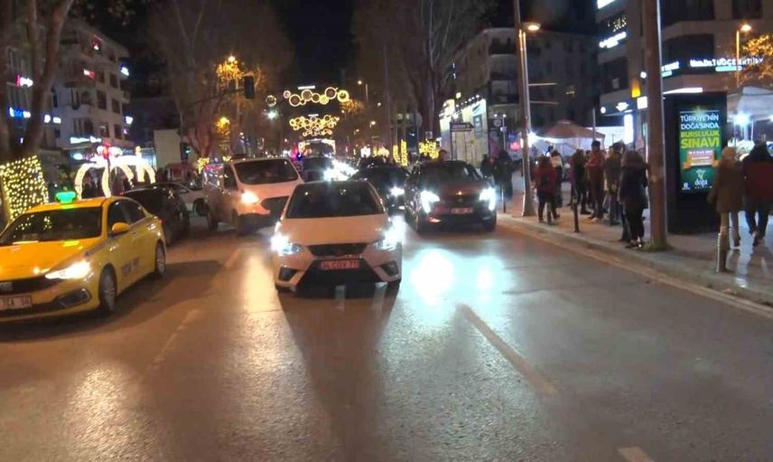 Yeni yıl geri sayımında, 2023’e sadece saniyeler kala araçların oluşturduğu konvoy, kornalar ve eğlenceli anlarla doluydu. Cadde boyunca dolaşan araçlar, kutlamalara katılan vatandaşların hareketlerine eşlik etti. Bazı vatandaşlar canlı müziğin tadını çıkarırken, diğerleri bu özel anları cep telefonlarıyla ölümsüzleştirdi.