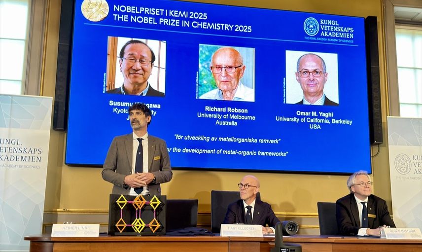 İsveç Kraliyet Bilimler Akademisi, 2025 Nobel Kimya Ödülü sahiplerini belirledi. Ödül, Japon bilim insanı Susumu Kitagawa, Avustralyalı Richard Robson ve Amerikalı Omar M. Yaghi'ye verildi. Araştırmacılar, "metal-organik çerçevelerin geliştirilmesi" üzerinde gerçekleştirdikleri öncü çalışmalarla bu ödülü kazandılar.
