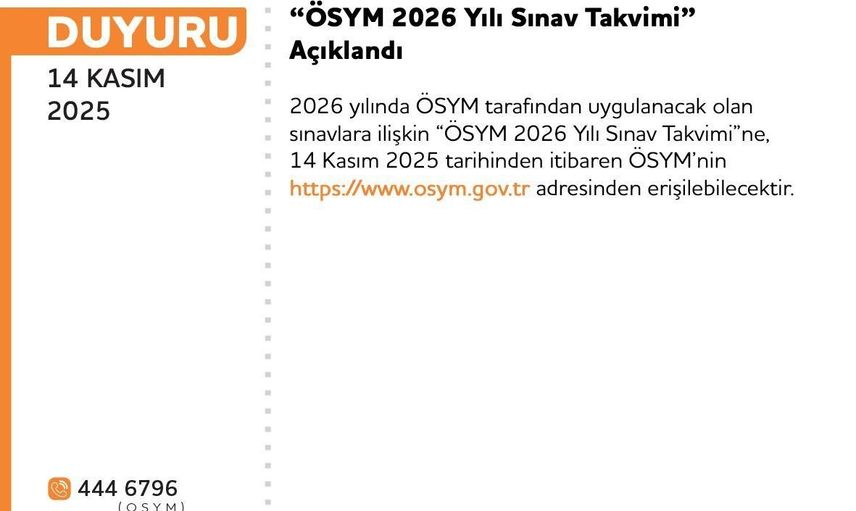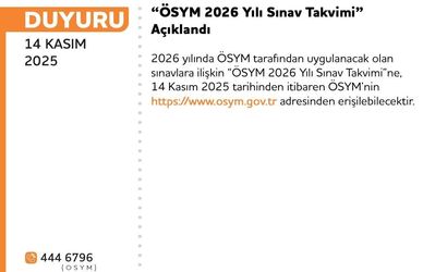 Ölçme, Seçme ve Yerleştirme Merkezi (ÖSYM), 2026 yılına ait sınav takvimini resmi olarak açıkladı.