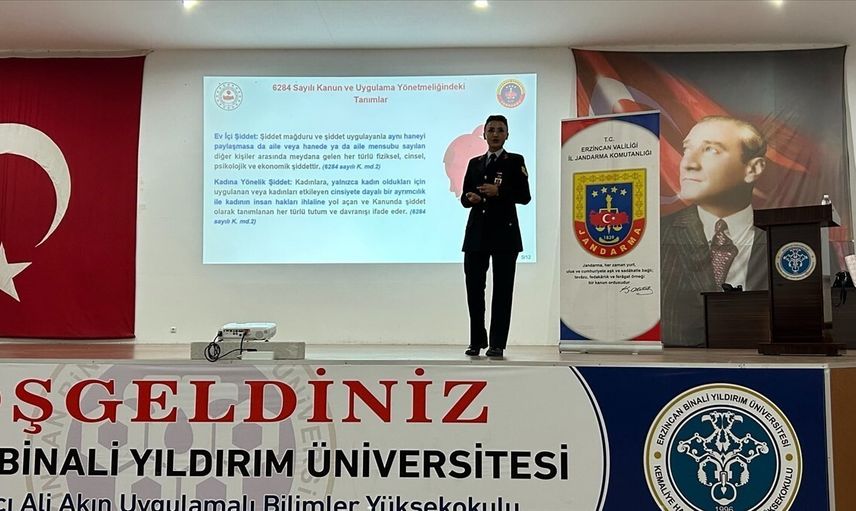 Erzincan İl Jandarma Komutanlığı Aile İçi Şiddetle Mücadele ve Çocuk Kısım Amirliği, Kemaliye'deki Hacı Ali Akın Meslek Yüksekokulu'nda bilgilendirme etkinliği düzenledi.