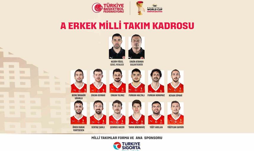 A MİLLİ ERKEK BASKETBOL TAKIMI'NIN, FIBA 2027 DÜNYA KUPASI ELEMELERİ'NDE BUGÜN İSVİÇRE İLE OYNAYACAĞI MÜSABAKANIN 12 KİŞİLİK KADROSU BELLİ OLDU.