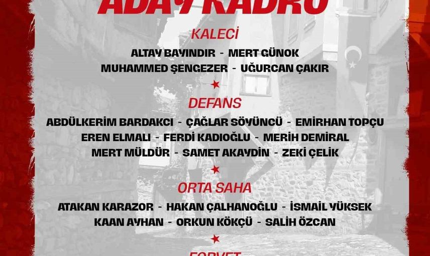 Bu kadro ile A Milli Takım, hedeflediği başarıya ulaşmak için mücadele edecek.