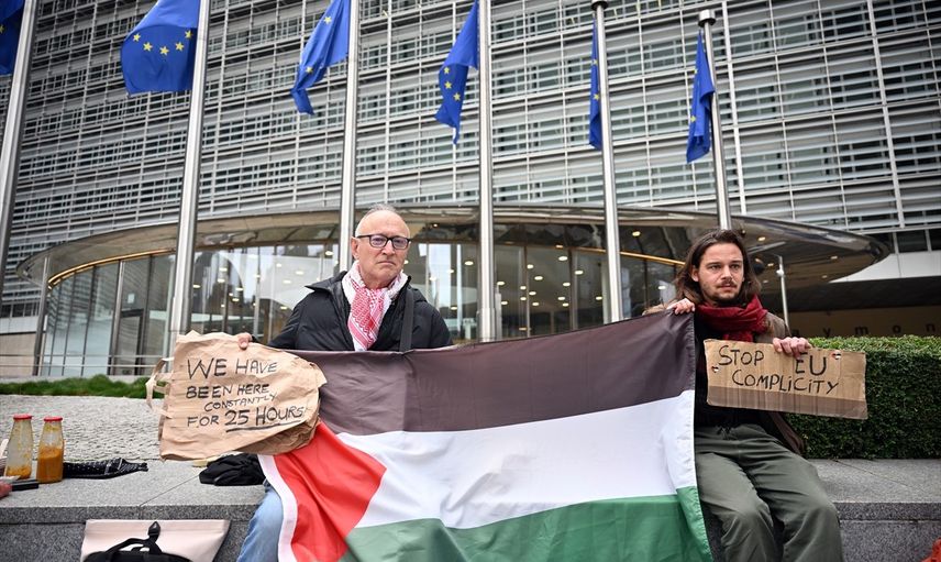 Avrupa Birliği (AB) Komisyonu binası önünde, 25 saat boyunca bekleyen bir grup, ateşkes nedeniyle İsrail'e baskı yapılmasını ve Tel Aviv'in savaş suçlarından sorumlu tutulmasını istedi. Aktivistler, geceyi binanın önünde uyku tulumları ve şemsiyelerle geçirerek dikkat çekmeye çalıştılar.