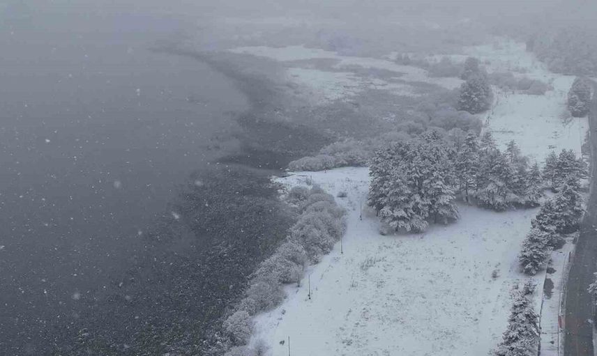 Dün ve bu sabah saatlerinde artarak süren yağışlarla birlikte, milli parkta kar kalınlığı yer yer 10 santimetreye kadar ulaştı. Göl çevresindeki çam ormanları ve parkın yürüyüş yolları, bu etkileyici beyaz örtü ile kaplanarak görsel bir şölen haline geldi.