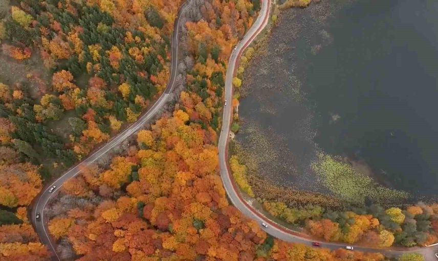 Yoğun ilgi sebebiyle Abant’a girişte uzun araç kuyrukları oluştu. Dron ile havadan görüntülenen Abant Gölü, sarı, kırmızı ve yeşilin çeşitli tonlarını barındıran eşsiz bir görsel şölen sunarak, kartpostallık manzaralar oluşturdu.