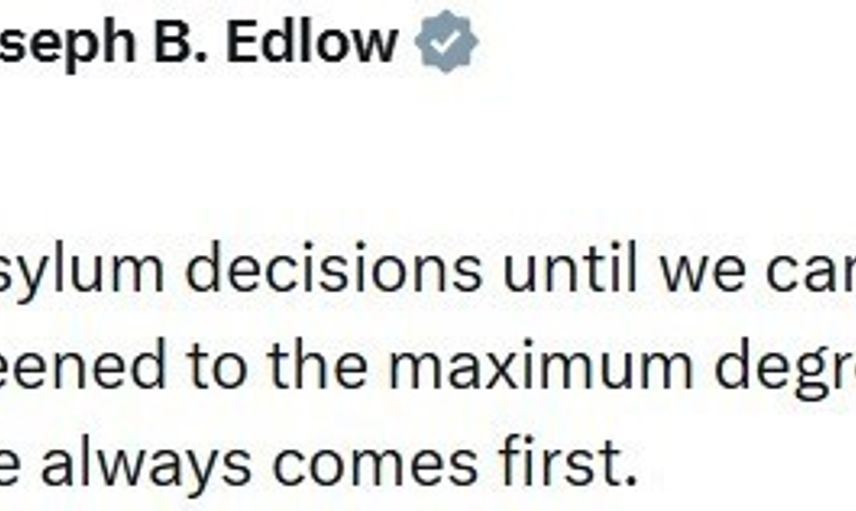 ABD Vatandaşlık ve Göçmenlik Hizmetleri (USCIS) Direktörü Joseph B. Edlow, güvenlik konusunda her bireyin titizlikle incelendiğine dikkat çekerek, tüm iltica başvurularının askıya alındığını belirtti. Edlow, "Amerikan halkı her zaman önce gelir" ifadelerini kullandı.