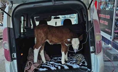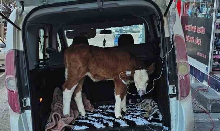 Durumu fark eden besici, hastalanan buzağıyı ilçe merkezindeki bir veterinere götürdü. Veteriner hekim Bülent Köse, buzağıya acil müdahaleyi otomobilin bagajında gerçekleştirdi. Damar yolu açma işlemi yapıldı, ilaç verildi ve ardından maske ile oksijen destek sağlandı.