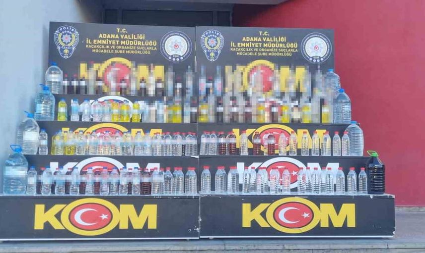 Adana'da, pet şişelere doldurularak piyasaya sürülmesi planlanan toplam 500 litre sahte ve kaçak alkollü içki ele geçirildi.