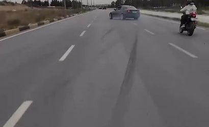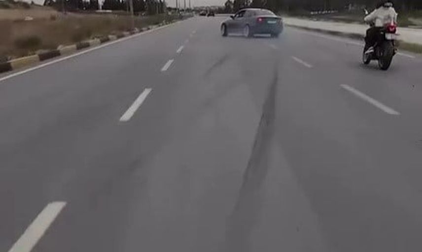 Olay, İlim Yolu Bulvarı'nda gerçekleşti. 35 YM 145 plakalı BMW marka otomobil, drift yaparken karşısındaki motosikletli, son anda çarpışmaktan kurtulmayı başardı. Bu anlar, başka bir motosikletlinin kask kamerasına yansıdı.