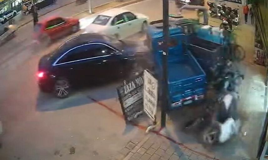 Henüz sürücüsü ve plakası belirlenemeyen bir otomobil, ağır ilerleyen araçları geçmek isterken önce önündeki dolmuşa, ardından da kaldırımda yer alan iki adet 3 tekerli motosiklete çarptı.