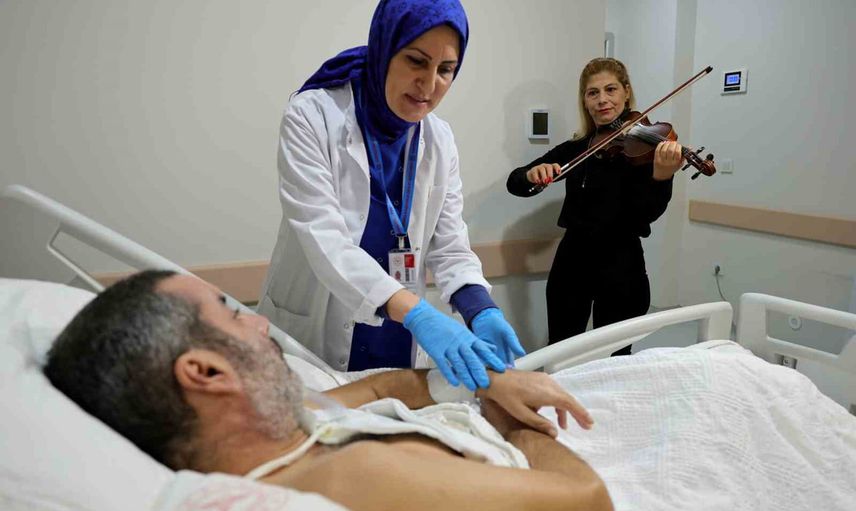 Adana Karşıyaka Devlet Hastanesi’nde yer alan Palyatif Bakım Servisi, tedavi gören hastalara çeşitli etkinliklerle destek olmayı sürdürüyor. Bu çerçevede, hastalara keman çalınarak müzik dinletisi düzenlenirken, hasta yakınları için de Kur’an-ı Kerim okunarak manevi destek sağlanıyor.