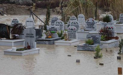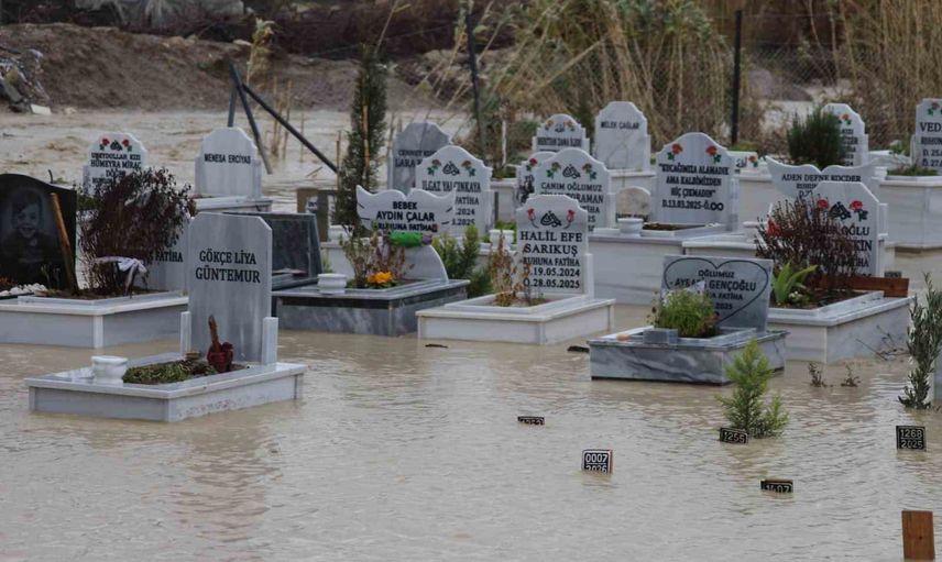 Adana’da devam eden sağanak yağışın etkisiyle, mezarlık yakınında bulunan kanal taştı. Bu durum, özellikle Buruk Cumhuriyet Mahallesi'ndeki Buruk Mezarlığı’ndaki birçok mezarın sular altında kalmasına neden oldu.