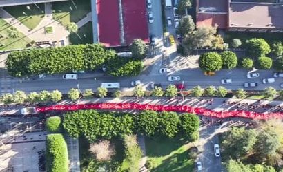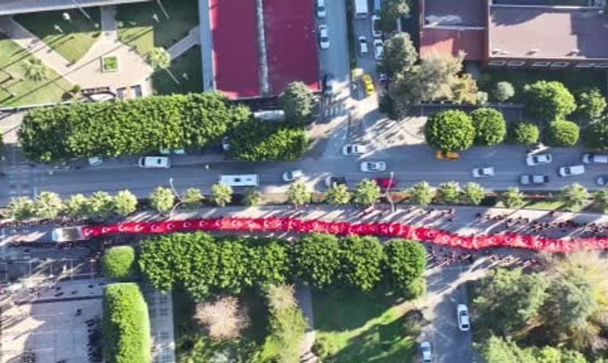 Çelenk töreninin ardından katılımcılar, 500 metrelik Türk Bayrağı ile İstasyon Meydanı’na doğru bir kortej yürüyüşü gerçekleştirdi. Burada saygı duruşunda bulunulup, ardından İstiklal Marşı okundu.