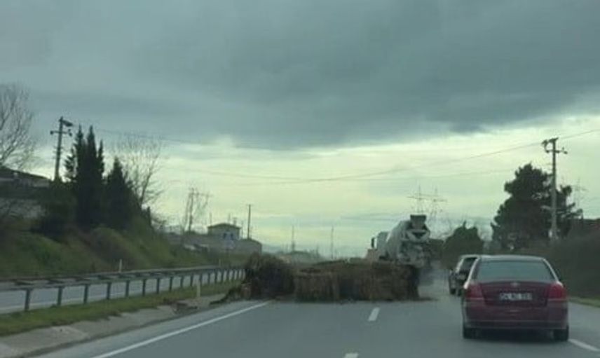 Dağdibi Mahallesi bölgesinde meydana gelen bu olayda, tırın dorsesinden birçok saman balyası yola savruldu. Yola yayılan balyalar, sürücüler için zorlu anlar yaşattı ve trafik akışında kısa süreli bir aksamaya neden oldu.