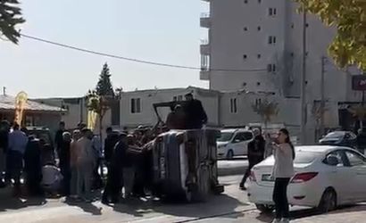 ADIYAMAN’DA OTOMOBİLLE ÇARPIŞAN ARAÇ DEVRİLEREK YAN YATTI.