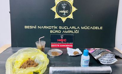 Besni İlçe Emniyet Müdürlüğü'ne bağlı Narkotik Suçlarla Mücadele Büro Amirliği ekipleri, Cumhuriyet Başsavcılığı'nın koordinesinde bir eve baskın düzenledi. Gerçekleştirilen aramada, uyuşturucu madde ve uyuşturucu üretiminde kullanılan sıvılar bulundu.