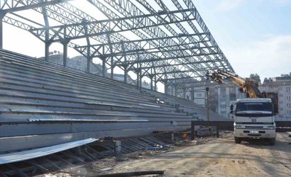 AYDIN'IN EFELER İLÇESİNDE YER ALAN VE DEPREME DAYANIKSIZ OLDUĞU İÇİN YIKILARAK YENİDEN YAPIMINA BAŞLANAN ADNAN MENDERES STADYUMU’NUN İNŞAATINDA ÇALIŞMALAR YÜZDE 75 SEVİYESİNE ULAŞTI.