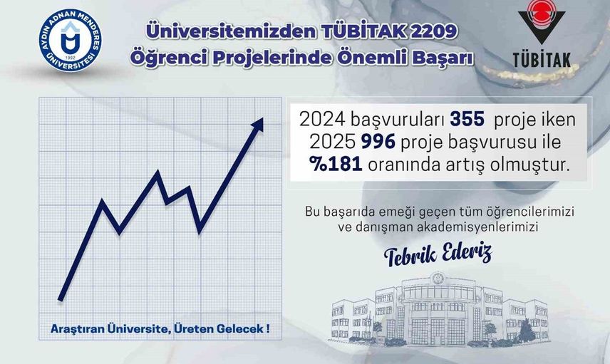 Aydın Adnan Menderes Üniversitesi, öğrenci projelerinde tarihi bir başarıya imza atarak, araştırma üniversitesi olma vizyonunu pekiştiriyor. ADÜ Rektörü Prof. Dr. Bülent Kent, bu gelişmelerin önemini vurguladı ve şu ifadelerde bulundu:
