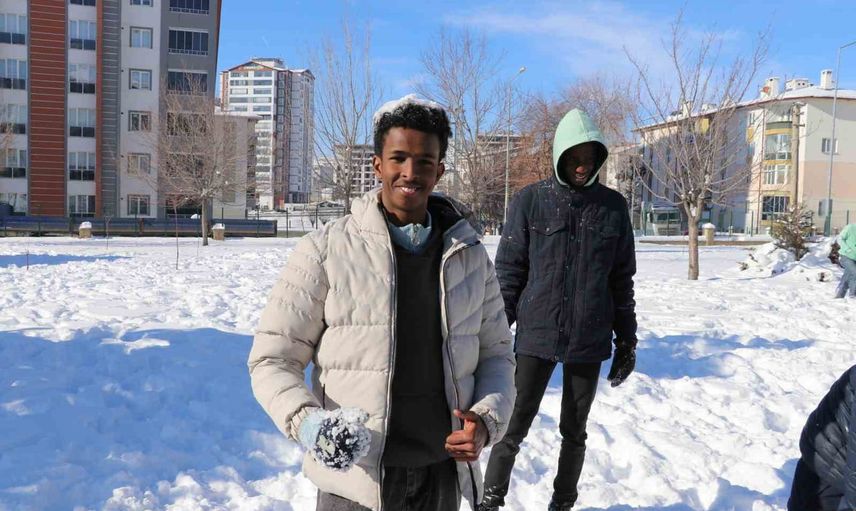 Kenyalı öğrenci Shueb Ahmed Abdikadir, heyecanını dile getirerek, "Bu sene karı ilk defa görüyorum. Arkadaşlarımla kartopu savaşı yapıp kardan adam yaptık. Kar tatilinde oynamak çok heyecanlıydı" dedi.