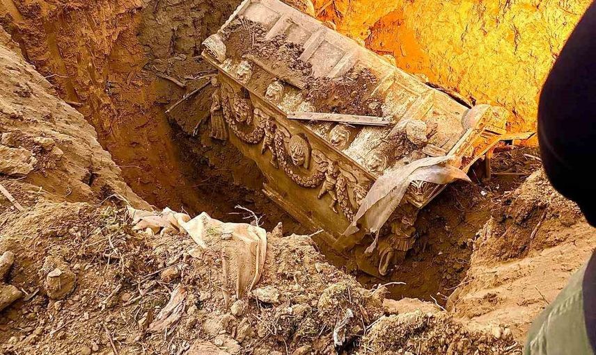 Beldedeki bir evin arazisine dair alınan ihbar üzerine, JASAT ekipleri iş makineleriyle kazı çalışması yaptı. Kazı sonucunda uzunluğu yaklaşık 1.5 metre ve genişliği 50 santim olan bir lahit keşfedildi.