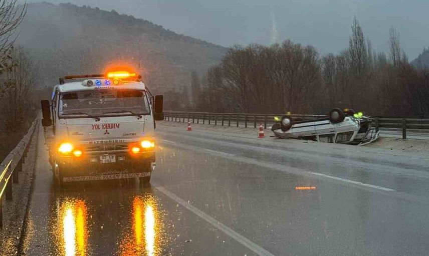 Savrulan otomobil, yol kenarındaki refüje devrildi. Kaza sonucunda sürücü yaralanırken, olay yerine intikal eden ambulans yardımıyla hastaneye kaldırıldı.