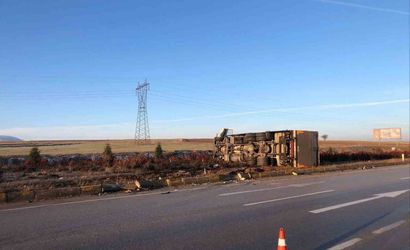 Edinilen bilgilere göre, S.E. (32) yönetimindeki 43 AFF 580 plakalı kamyon, Halil Saygı'nın kullandığı 03 DU 821 plakalı otomobille çarpıştı. Çarpışmanın etkisiyle kamyon refüje devrilirken, otomobil ise şarampole yuvarlandı.