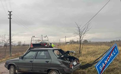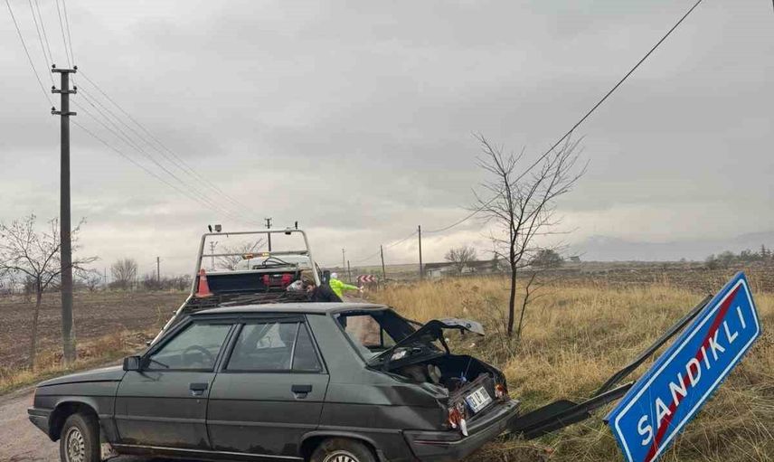 Afyonkarahisar’ın Sandıklı ilçesine bağlı Dutağaç köyü girişinde meydana gelen kazada, 03 LP 188 plakalı otomobil, sürücünün direksiyon hakimiyetini kaybetmesi sonucu yoldan çıkarak trafik levhasına çarptı ve ardından şarampole düştü.