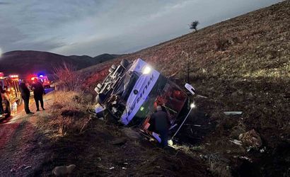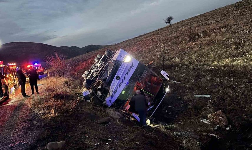 Afyonkarahisar'da kontrolden çıkarak devrilen yolcu otobüsünde ilk belirlemelere göre 2 kişi yaşamını yitirdi, 21 kişi ise yaralandı.