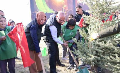 Ağrı’da, 11 Kasım Milli Ağaçlandırma Günü vesilesiyle düzenlenen etkinlikte binlerce fidan toprakla buluşturuldu.