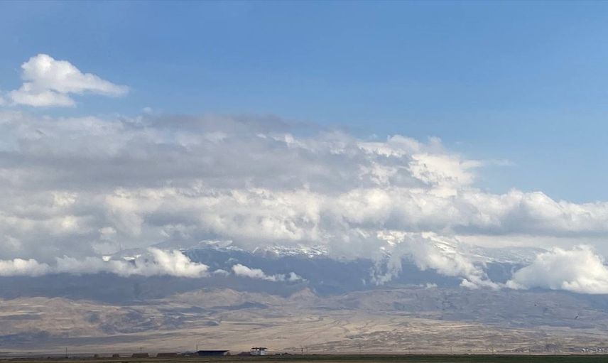 5 bin 137 metre rakıma sahip Ağrı Dağı'nın yüksek kesimleri, yoğun kar yağışı sonucu beyaz örtüyle kaplandı. Bu durum, dağın etrafındaki bulutlarla birleşerek görsel bir şölen sundu. Büyüleyici Manzara