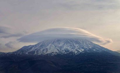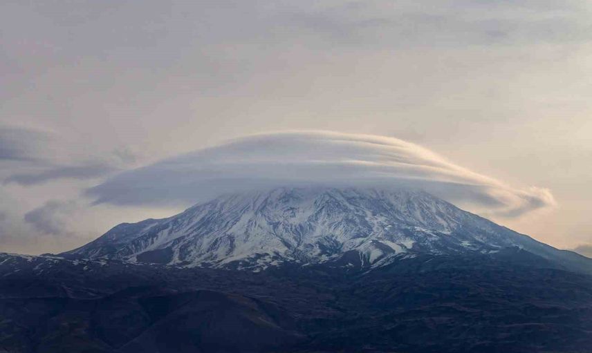 Ağrı Dağı’nda oluşan bu nadir doğa olayına halk arasında şapka bulutu da denilmektedir. Bu atmosferik fenomen, dağın zirvesine sarılarak büyüleyici görseller oluşturdu.