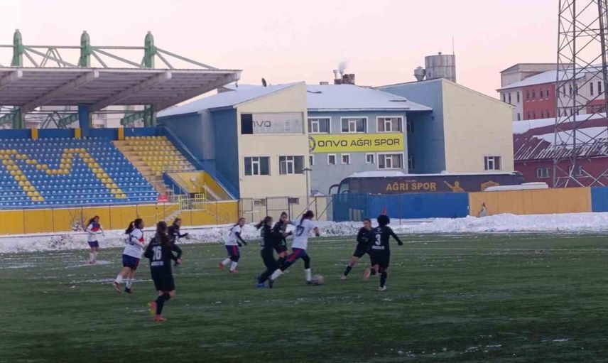 TFF Kadınlar 2. Ligi'nde mücadele eden Ağrı Kadın Futbol Takımı, yoğun kar yağışına ve dondurucu soğuk hava koşullarına rağmen, kendi sahasında Kahramanmaraş Anadolu Spor Kadın Futbol Takımı'nı 4-1 mağlup etti.