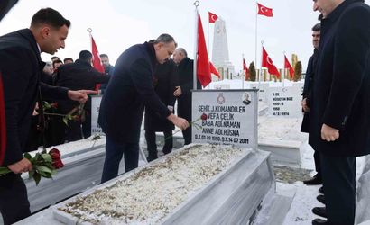 Vali Bozkurt, ay yıldızlı bayrağın gölgesinde, vatan ve millet uğruna hayatını feda eden aziz şehitlerin kabirlerine karanfil bırakarak dua etti. Şehitleri rahmet ve minnetle anan Bozkurt, "Ruhları şâd, mekânları cennet olsun" şeklinde duygularını ifade etti.