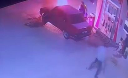 Olay anı, akaryakıt istasyonunun güvenlik kameralarına yansıdı. Görüntülerde sürücünün ve yanındaki kişilerin ilk anda panik yaşadığı, ardından istasyon çalışanının hızla müdahale ettiği görülüyor.