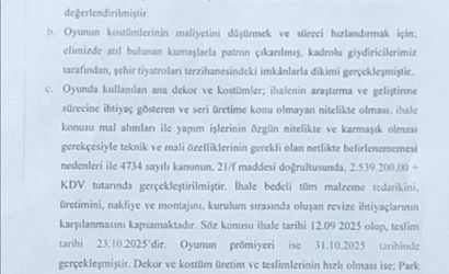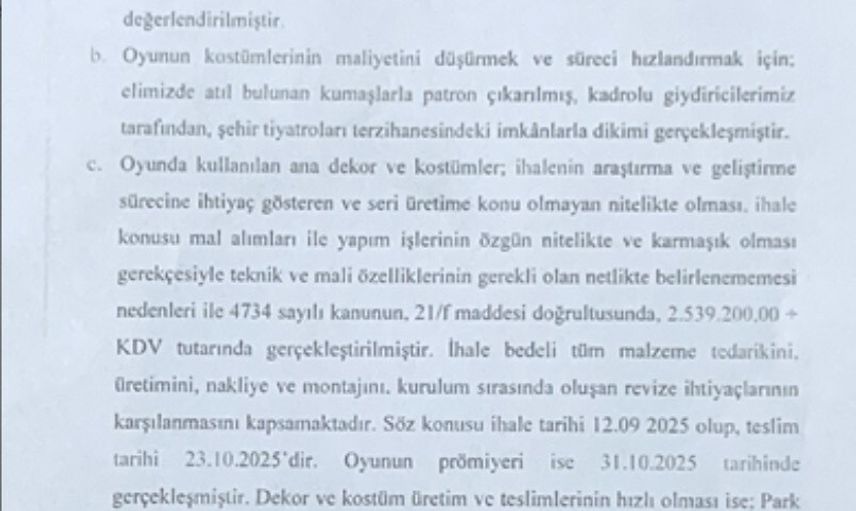 'Cadı Kazanı' adlı oyun üzerinden eleştirilerini sürdüren Yıldız, Üzümcü'nün yüksek maaşına da dikkat çekti. Yıldız, Cemil Tugay’ın eleştirilerine verdiği yanıtların aslında durumu açıklamaktan uzak olduğunu belirtti. Oyun için yapılan harcamaların detaylarını paylaşan Yıldız, 4 milyon liralık bütçenin hesap verebilirliğini sorguladı.
