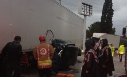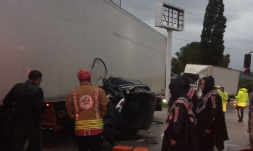 Manisa'nın Akhisar ilçesinde sabah saatlerinde tır ile otomobilin çarpışması sonucu, aynı araçta bulunan bir çift hayatını kaybetti.