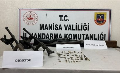 MANİSA'DA AKHİSAR İLÇE JANDARMA KOMUTANLIĞI VE JASAT EKİPLERİ TARAFINDAN İZİNSİZ KAZI YAPAN ŞÜPHELİYE YÖNELİK OPERASYONDA 2 METAL DEDEKTÖR, 43 PARÇA TARİHİ ESER NİTELİĞİNDE EŞYA VE 2 RUHSATSIZ AV TÜFEĞİ ELE GEÇİRİLİRKEN ŞÜPHELİ HAKKINDA İŞLEM BAŞLATILDI.