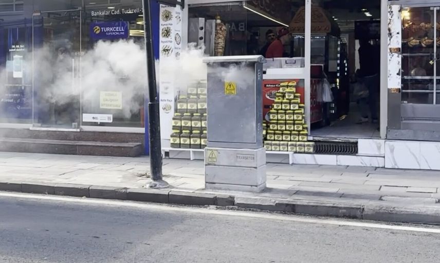 Aksaray'da, Bankalar Caddesi üzerindeki kaldırımlarda bulunan bir elektrik panosunda çıkan yangın, çevredeki vatandaşlar arasında panik yarattı.