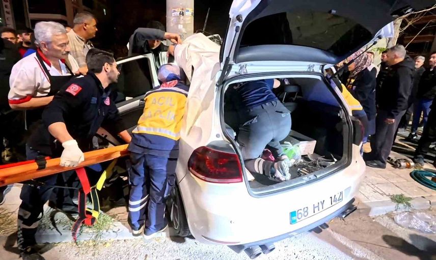 Otomobilin direğe yan kısmıyla çarpması sonucu araç, adeta direğe saplanırken, sürücü Oktay K. ve yolcu konumundaki 22 yaşındaki Tuğçe F. araç içinde sıkıştı. Kaza anını gören çevredeki vatandaşlar, durumu derhal 112 Acil Çağrı Merkezine ihbar etti.