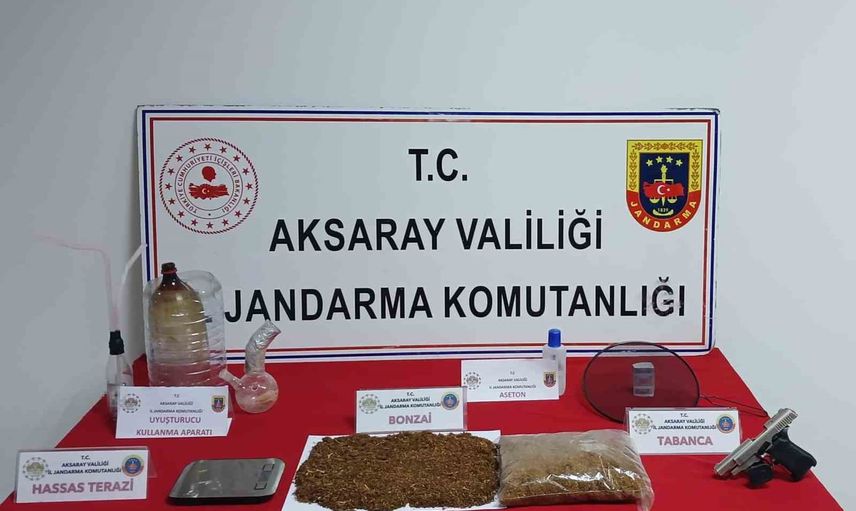 AKSARAY’DA UYUŞTURUCU İMAL VE TİCARETİ YAPAN ŞÜPHELİYE YÖNELİK GERÇEKLEŞTİRİLEN OPERASYONDA 789 GRAM BONZAİ, RUHSATSIZ TABANCA VE ÇEŞİTLİ MATERYALLER ELE GEÇİRİLDİ. ŞÜPHELİ İSE ÇIKARILDIĞI MAHKEMECE TUTUKLANARAK CEZAEVİNE GÖNDERİLDİ.