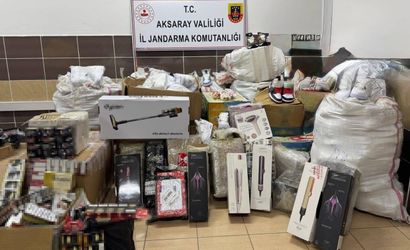 AKSARAY’DA JANDARMA EKİPLERİNİN ŞÜPHE ÜZERİNE DURDURDUĞU KAMYONDA BİNLERCE KAÇAK ÜRÜN ELE GEÇİRİLDİ.