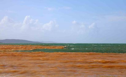 AKYAKA’DA DENİZİN RENGİ KAHVERENGİYE DÖNDÜ