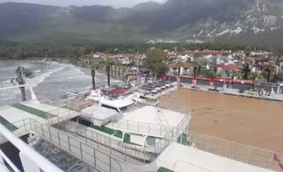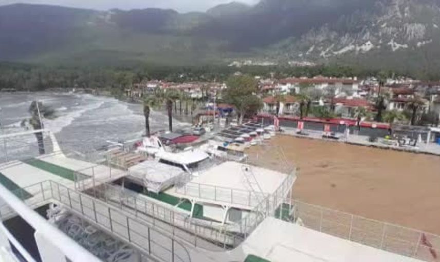 Akyaka ve Gökçe Sahili’nde, dağlardan gelen çamurlu suların denize karışması sonucu mavi deniz suyu kahverengiye döndü. Şiddetli fırtına nedeniyle oluşan yüksek dalgalar, Akyaka sahilinde deniz seviyesinin yükselmesine yol açtı.