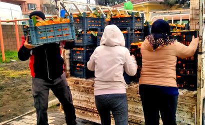 HATAY'DAKİ NARENCİYE ÜRETİCİLERİNDEN ÜRÜN SİPARİŞ EDEN ALAÇATI GÖNÜLLÜLERİ, HEM ÜRETİCİLERE KATKI SUNDU HEM DE ÜRÜNLERİ DEPREMZEDELERE ULAŞTIRDI