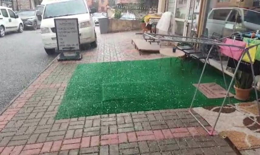 Hacet Mahallesi'nde Dolu Yağışı