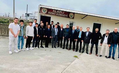 Öğrenciler, Alaplı Yurtkur Müdürü Ayşegül Akgül ile birlikte Alaplı Kent Konseyi hizmet binasını ziyaret ederek, Kent Konseyi Başkanı Yasin Ören ve yönetim kurulu üyeleriyle bir araya geldi.