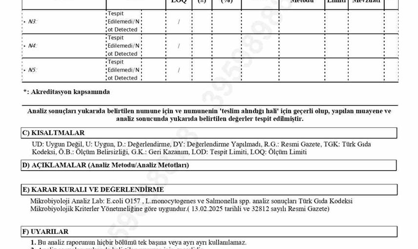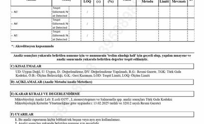 Alpedo'nun ürünleri, Tarım ve Orman Bakanlığı onaylı akredite laboratuvarda yeniden analiz edildi. Yapılan testlerin sonuçları da "uygun" olarak belirlendi. Bu, firmanın iç kontrolleri ile tam uyum gösterdiği belirtildi. Bakanlık tarafından gerçekleştirilen yeniden incelemede, bakterinin tespit edilmediği kesinlik kazandı.