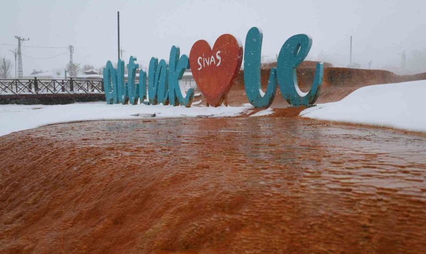 SİVAS’TA KAR YAĞIŞIYLA BİRLİKTE BİRÇOK GÖL BUZ TUTARKEN, ALTINKALE’DEKİ TERMAL SUYUN DONMAMASI DİKKAT ÇEKTİ.