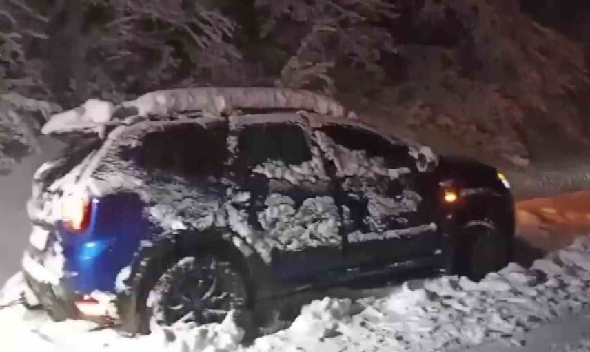 Greyder ile karlı yolu açan ekipler, mahsur kalan aileye ulaşarak, üstü karla kaplı otomobile halat bağlayarak, aracın saplandığı yerden çekilmesini sağladı. Ekiplere minnettar kalan aile, güvenli bir bölgeye götürüldü.